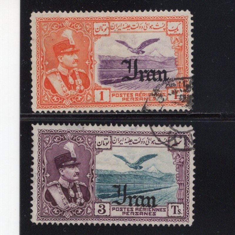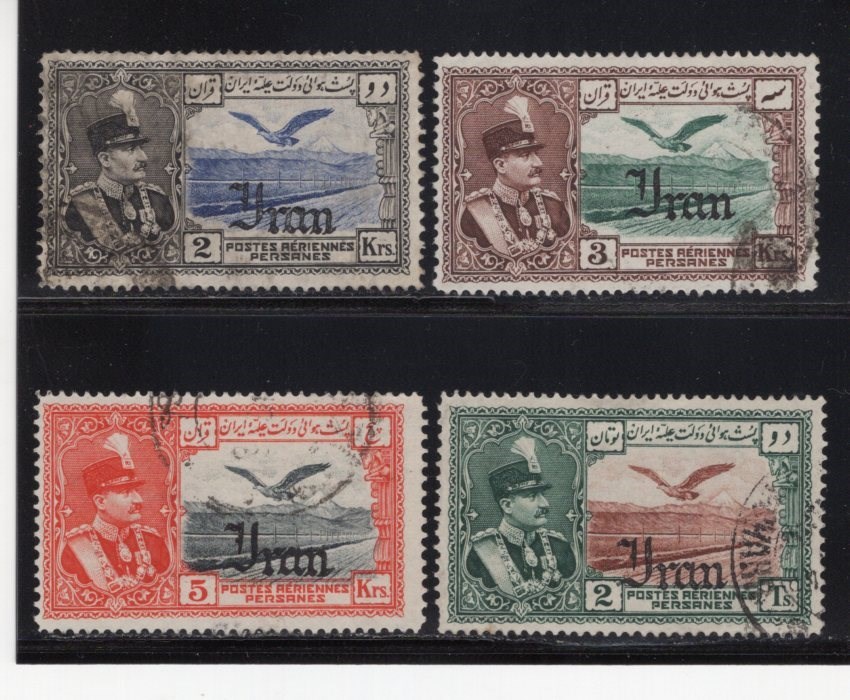 2kr to 3 Tomans eagle air post overprinted Iran Scott # C62-7 postally used Scott value $400.00, 1 Toman signed by Mr. Mehrdad Sadri.