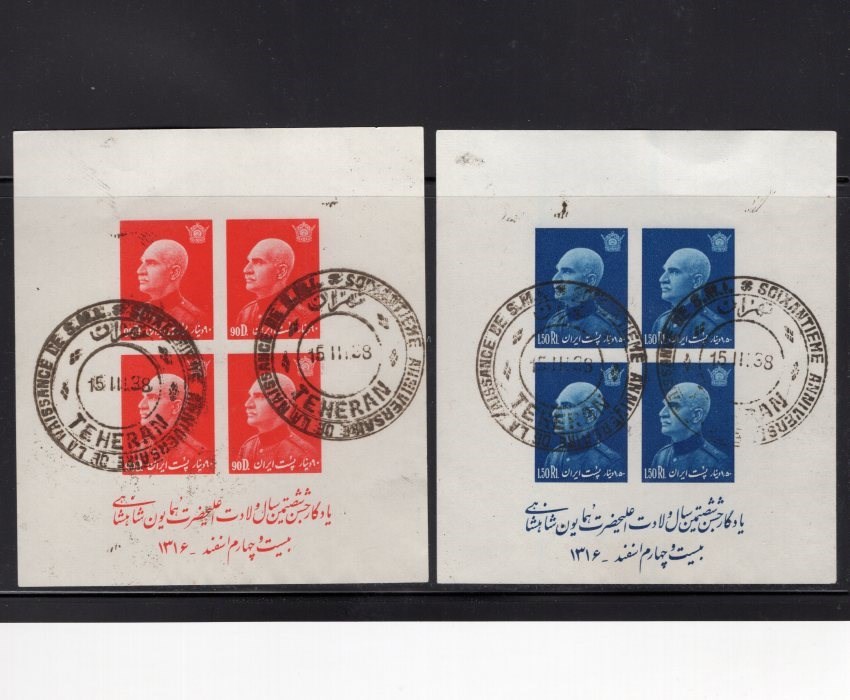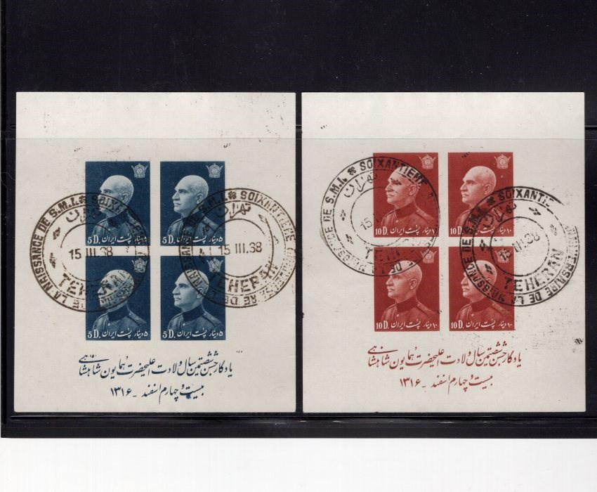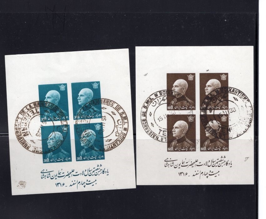 Six imperf sheet four from Reza Shah 60th birthday with Tehran birthday special postmark cancelled on first day of issue.