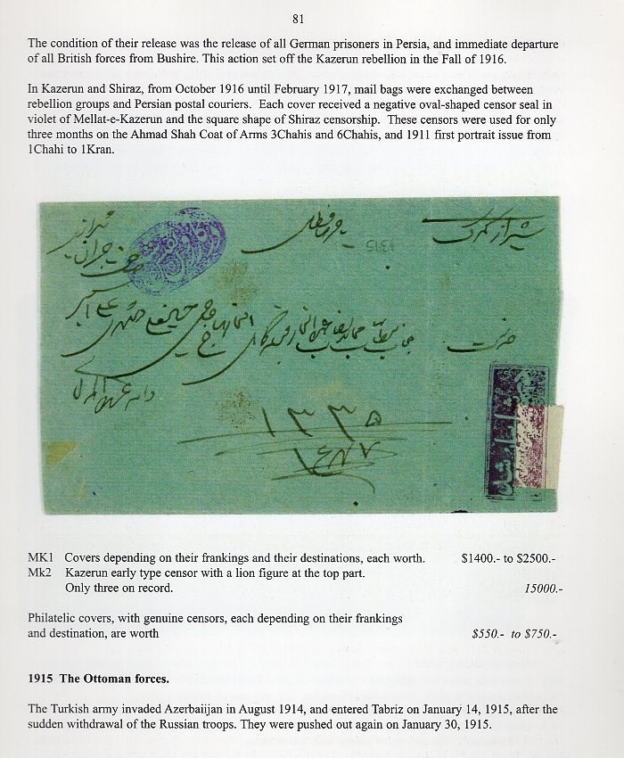 Iran 1868-1925 Ghajar Covers & Postal History Classic Specialized Catalogue