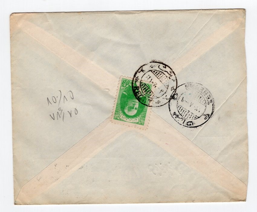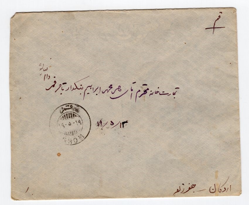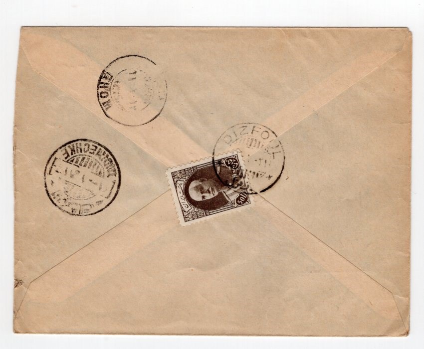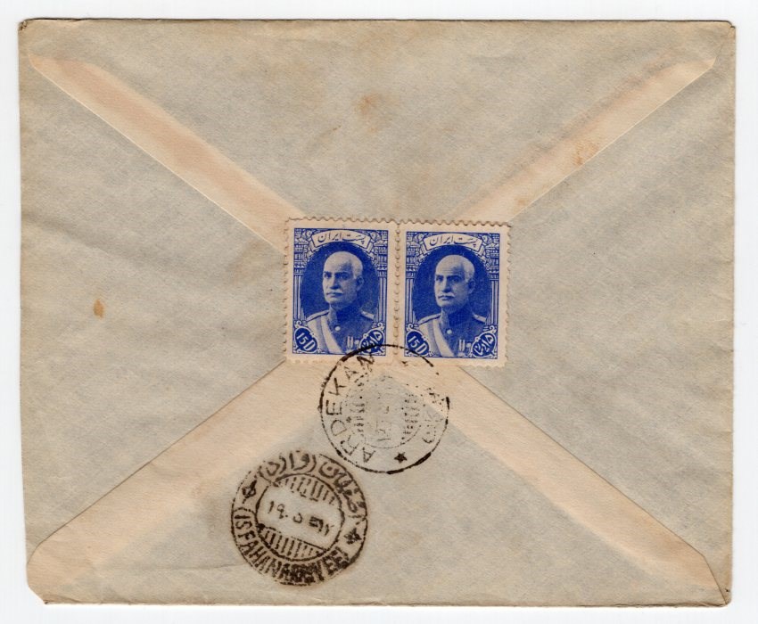 Four covers to Koum from Dizfoul via Indimichke, Yezd via Isfahan, Ardekan via Isfahan and Recht via Tehran.