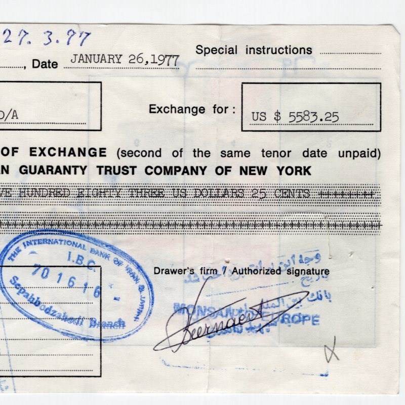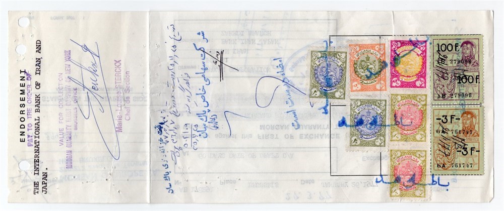 Iran 1977 Belgium Mixed Franking Revenue Draft