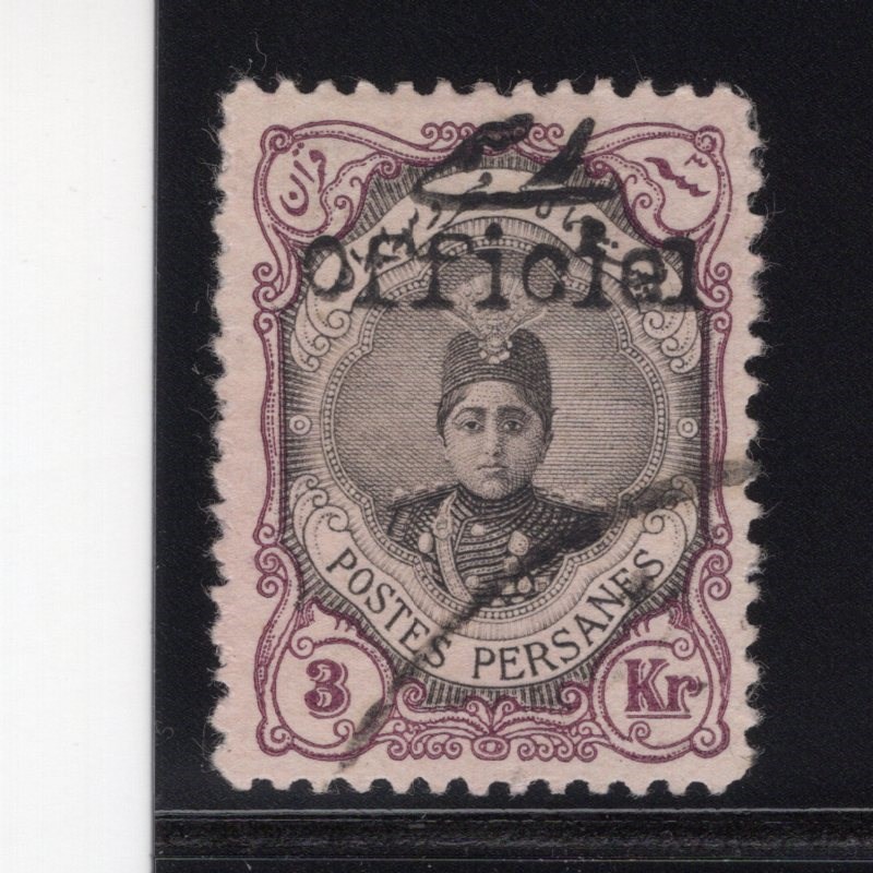3kr short perf 11.5x11 Ahmad Shah overprinted Officiel Scott # 511d postally used Scott value without cost signature $100.00, Signed by Mr. Mehrdad Sadri.