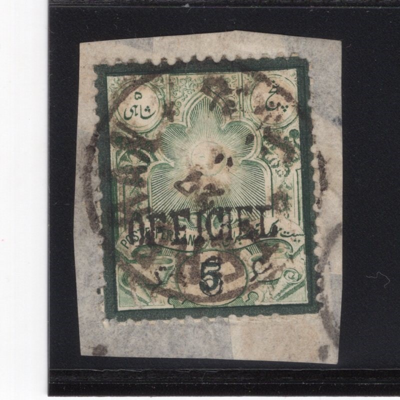 6ch Officiel on 5ch variety Farsi Post with two dots instead 3 changed it to Yost Scott # 66a postally used on piece cover Scott value for used stamp $100.00, Signed by Mr. Mehrdad Sadri.