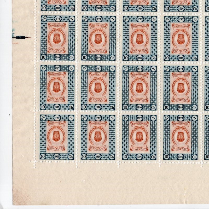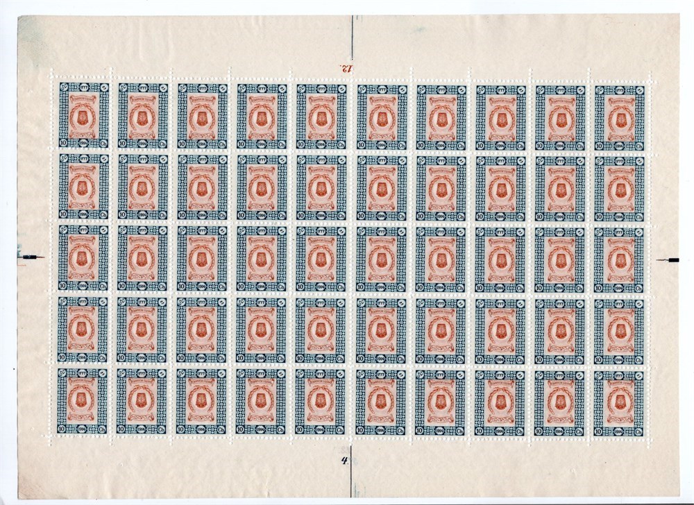 Iran 1915 Printed Both Sides Inverted Center 10ch Sheet 50 PV $1000