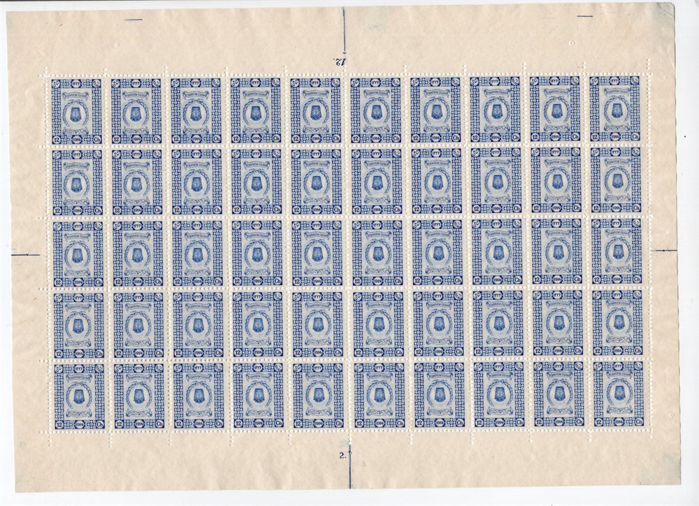 Iran 1915 Printed Both Sides Inverted Center 12ch Sheet 50 PV $1000
