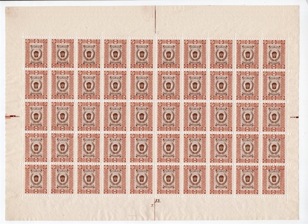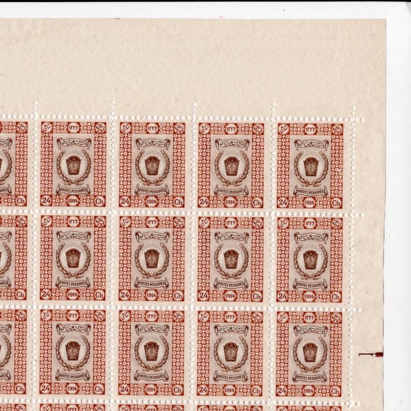 Iran 1915 Printed Both Sides Inverted Center 24ch Sheet 50 PV $1000