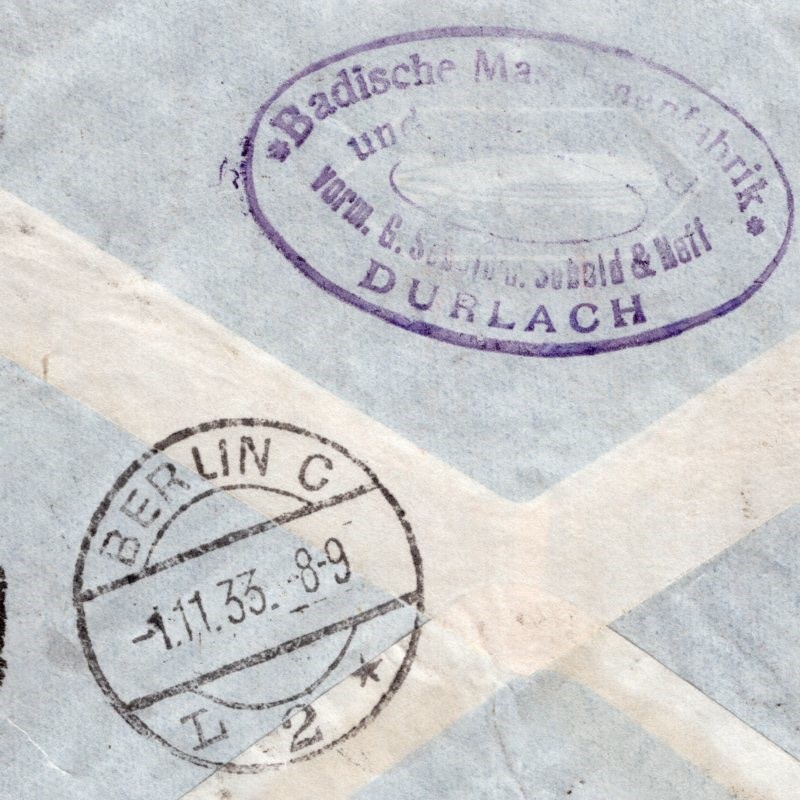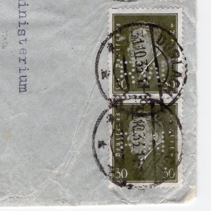 Germany 1933 Perfin Stamp Airmail Delivery Time Iran