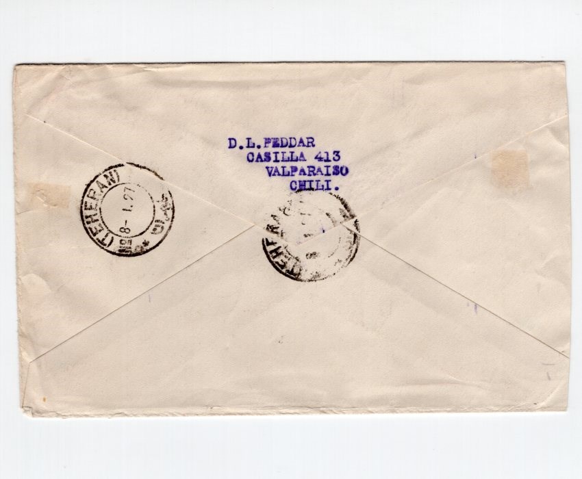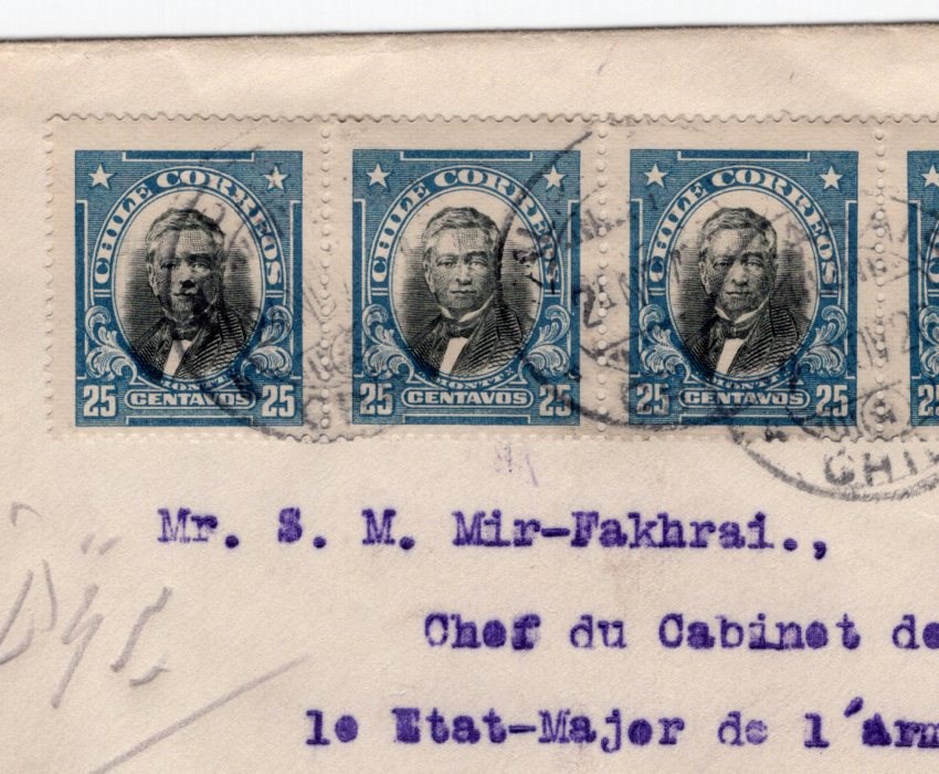 Scott # 106 strip four, 108 on registered cover from Valparaiso to Tehran address to Mirfakhrai minster of war.