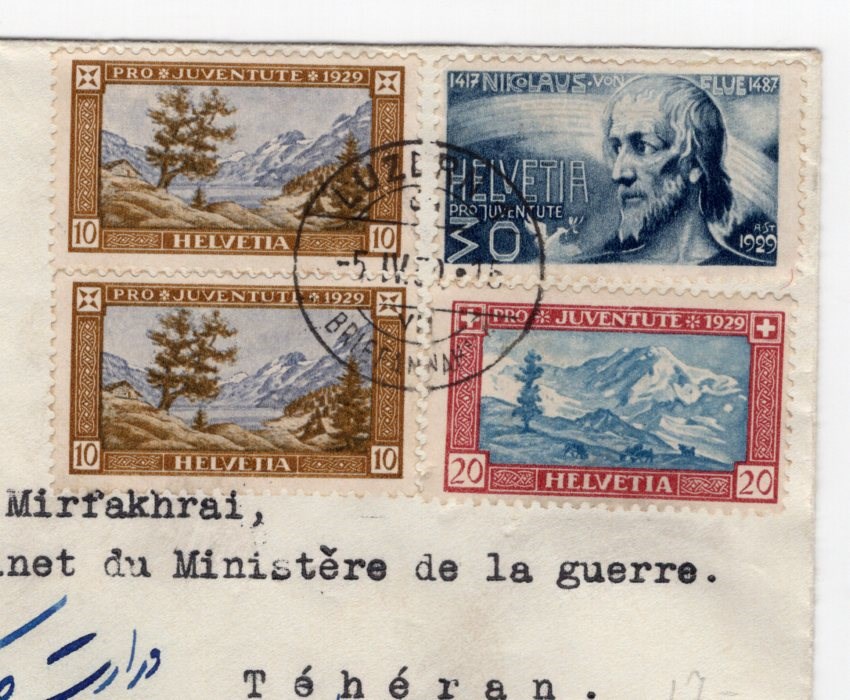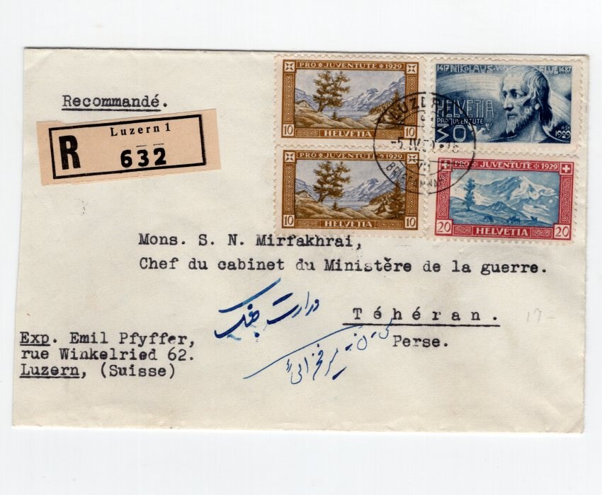 Switzerland 1930 Registered Semi Postal Minister War Iran