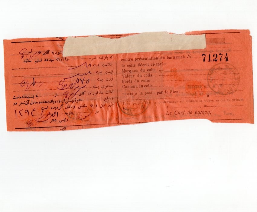Iran 1915 Crown Parcel Post Shifted Center 2 Waybill Permit
