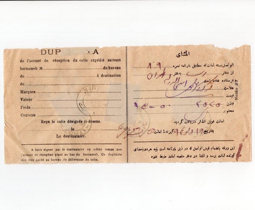 10ch with shifted up and down center on two parcel delivery permits from Recht to Tehran.