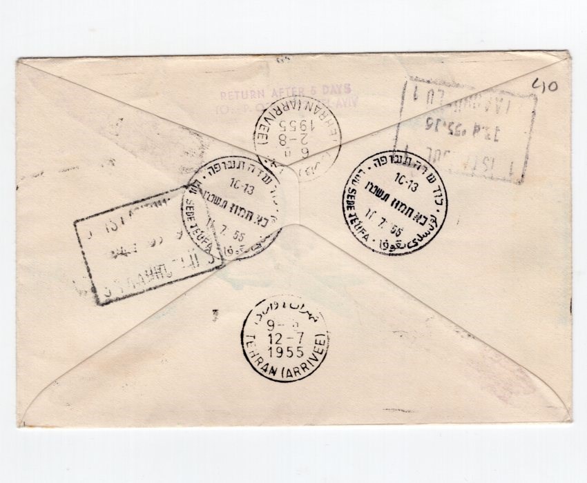 Israel 1955 Air France Cachet Special Flight Registered Iran