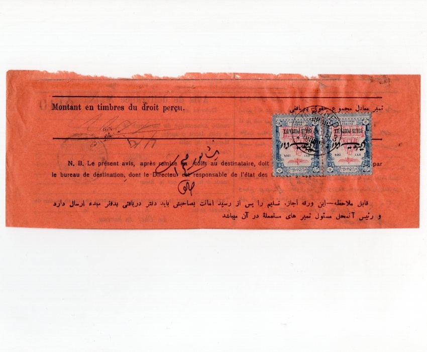 Iran 1916 Parcel Post Pair 2kr Waybill Permit