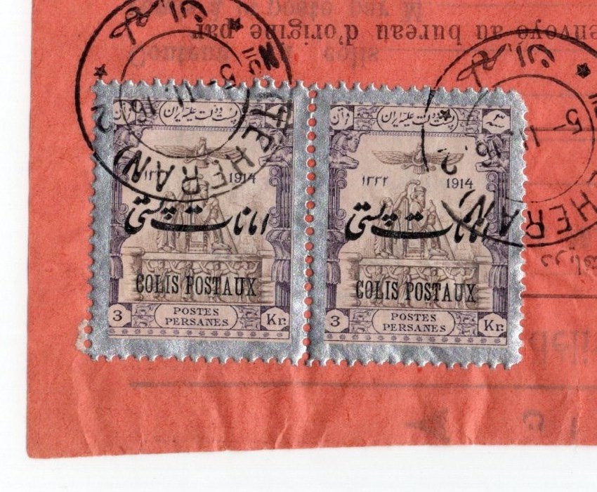 Iran 1916 Parcel Post Pair 3kr Waybill Permit
