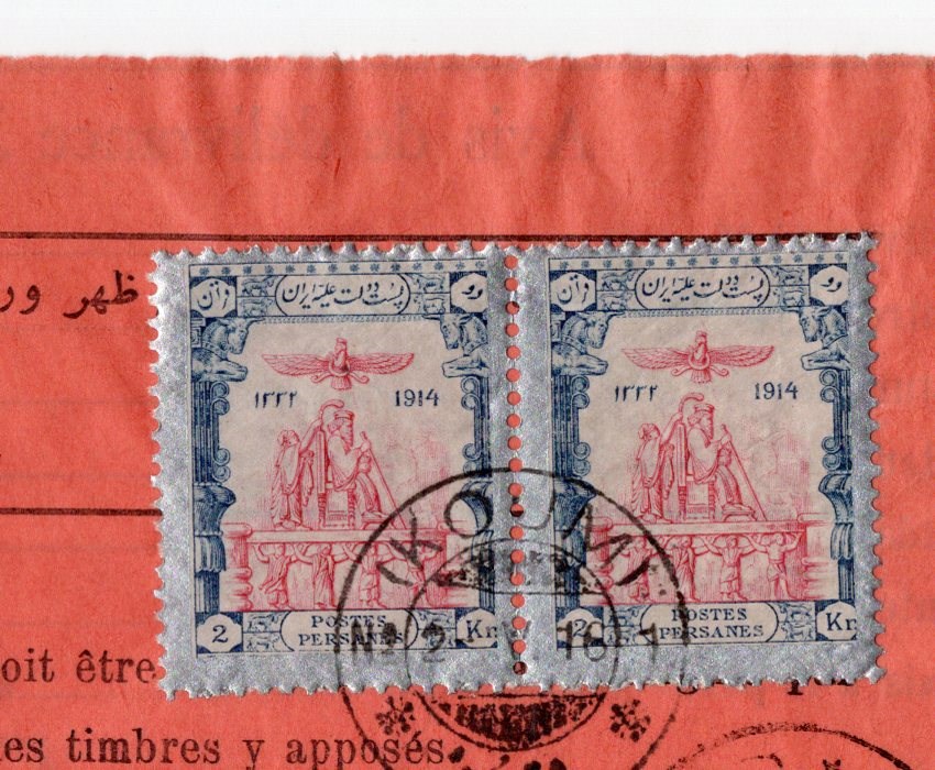 Iran 1916 Coronation Pair 2kr Waybill Permit