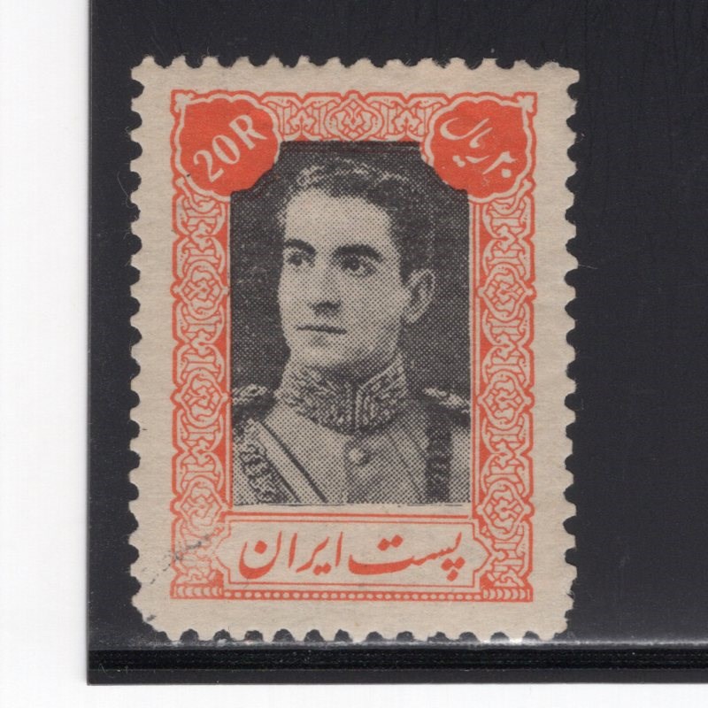 20 Rials from Shah 2nd set Scott # 903 mint hinged remnant with black stain on the front Scott value $200.00 Signed by Mr. Mehrdad Sadri.