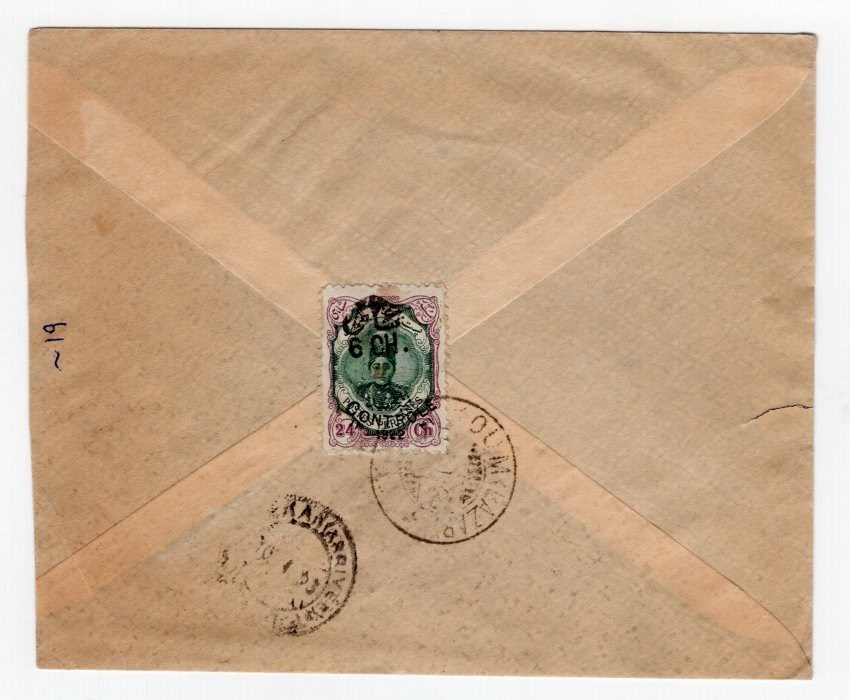 6ch on 24ch controle 1922 Scott # 664 on cover from Koum Bazar to Theran via Koum.