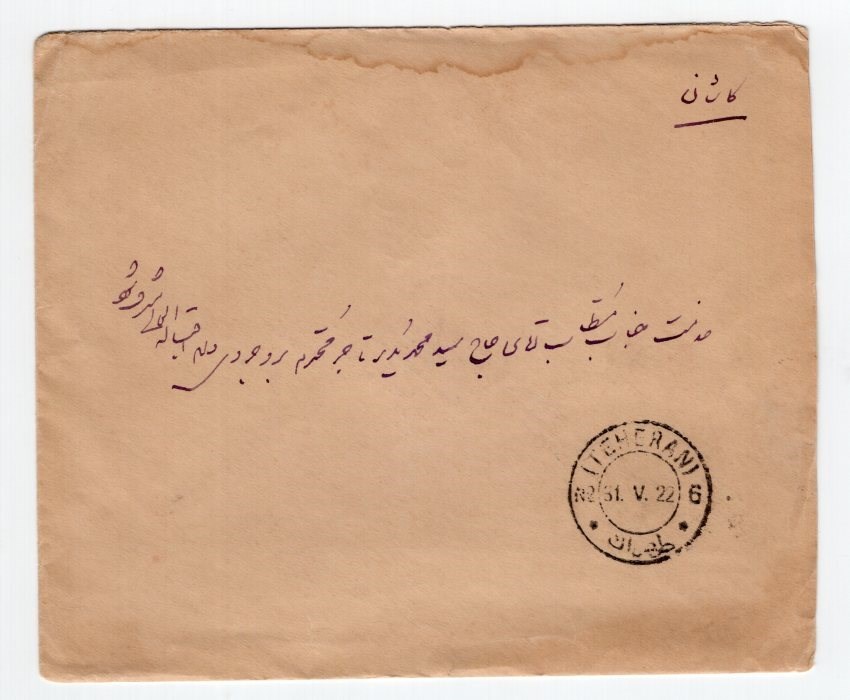Iran 1922 Ahmadi 3 Color 9ch Rate Cover & Letter