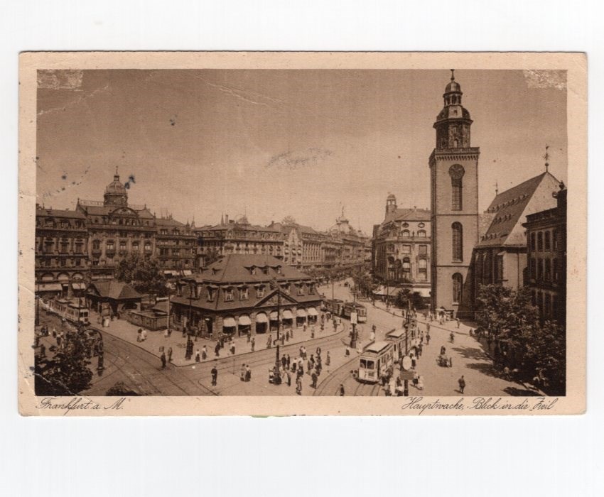 Airmail picture postal card with corner crease from Frankfurt to Tehran.