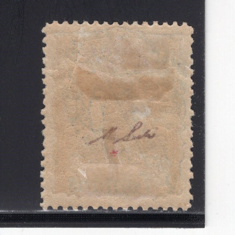 Inverted 2 Tomans Satdjian fancy surcharge on 5kr silver with Molaheze Shod control mark omitted too Persiphila # 347a & c mint double hinged remnant, signed by Mr. Mehrdad Sadri.