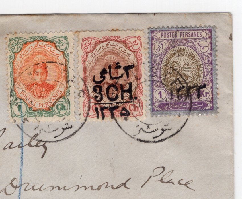 1ch, 3ch 1335 on 10ch Ahmad Shah, 1kr coat of arms overprinted 1333 on front.