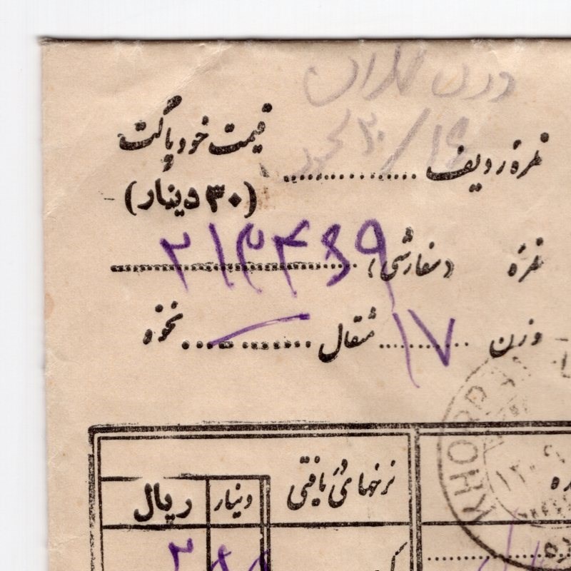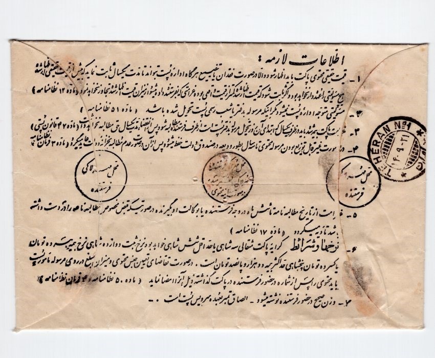 30 Dinar insured money envelope Persiphila # PIE4 with Scott # 770, 772x2, 783 pair mailed from Khoram Darah to Tehran Persi value from $350.00