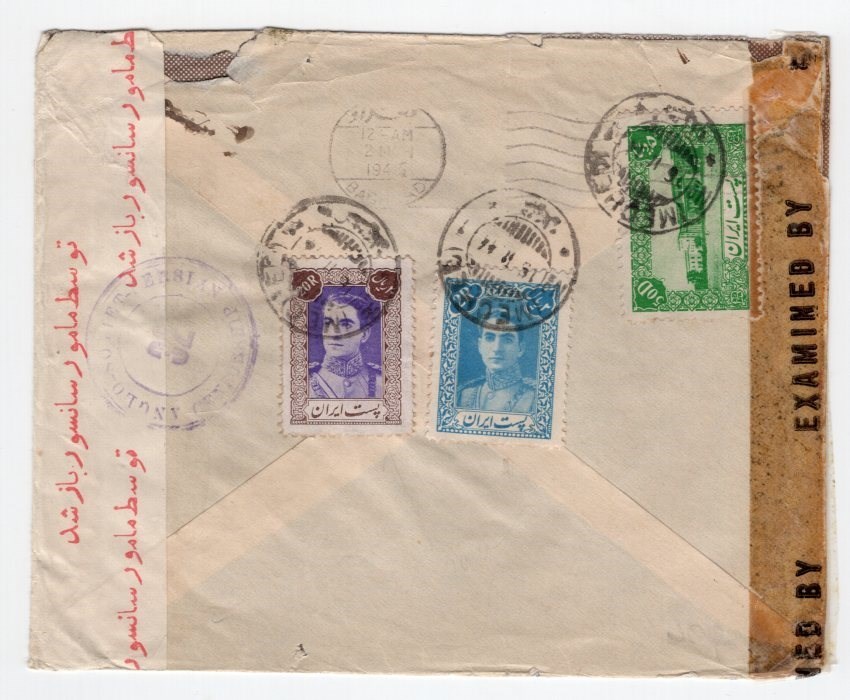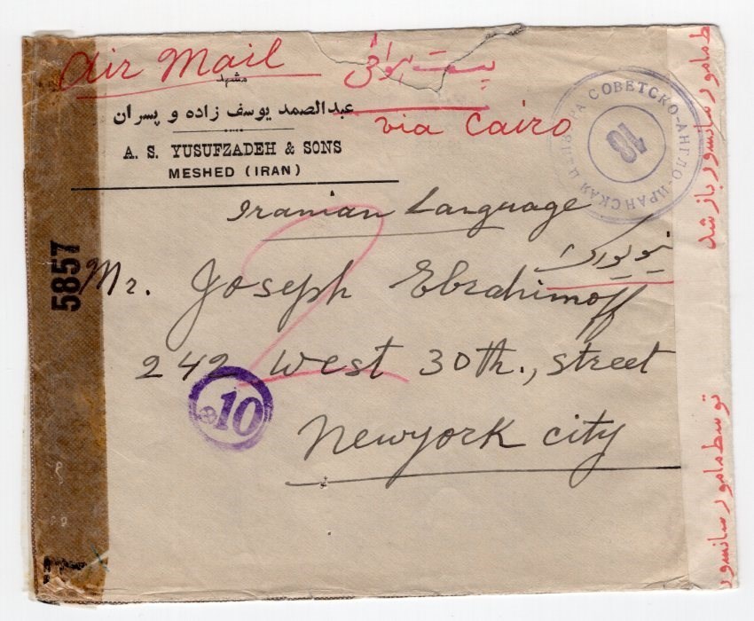 Scott # 886, 893, 902 on an airmail cover opened from three side and roughly on the top from Meched to New York via Baghdad with two different Anglo-Soviet-Persian censor and Farsi censor sealing label and English censor tape.