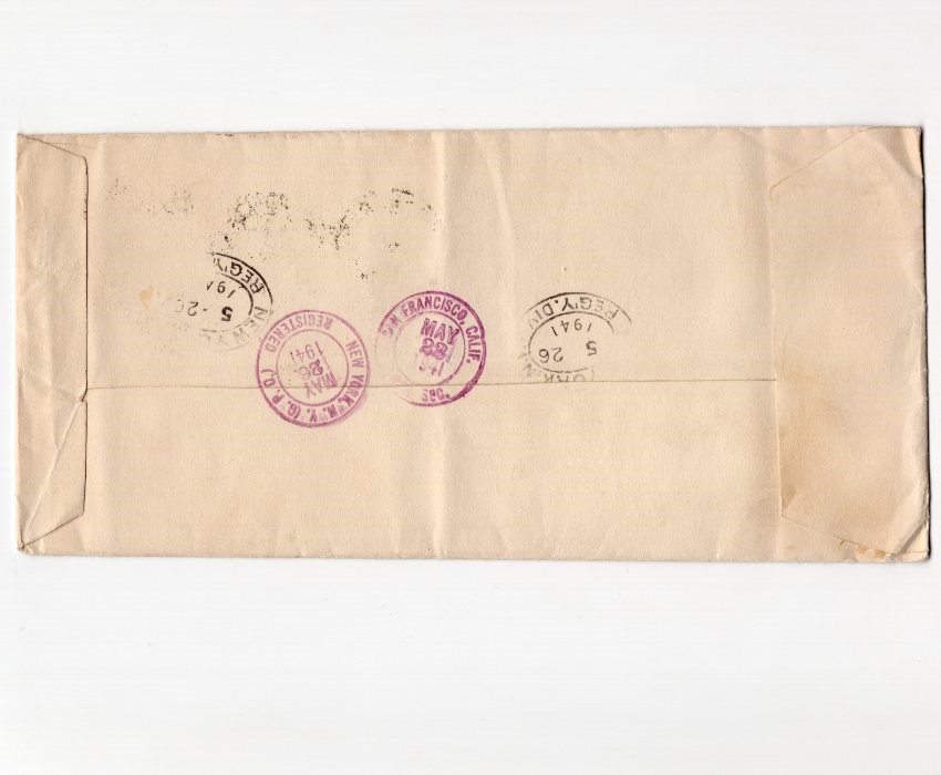 Scott # 859, 861, 865, 868 on registered cover with fold on the side mailed from America Consulate in Tehran to New York.