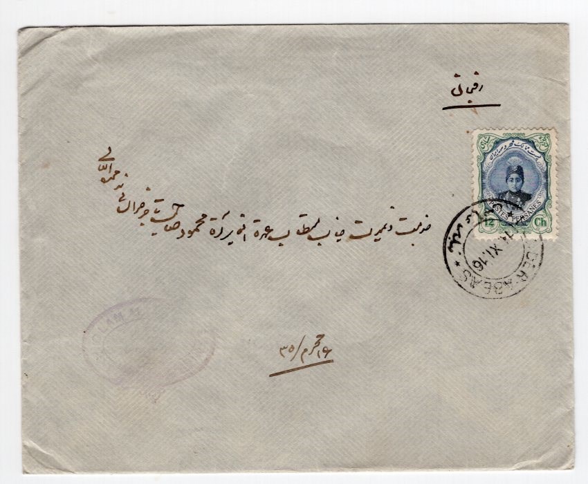 12ch Ahmad Shah Scott # 489 on double rate cover from Bender Abass to Rafsandjan.