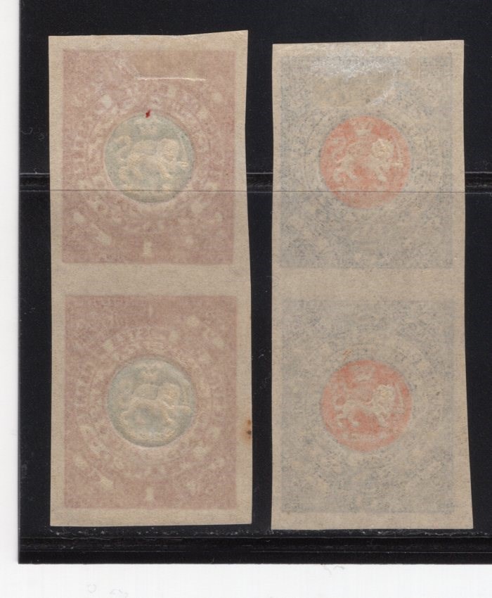 Imperf pair 1ch and 5ch Budapest official essay mint top stamp hinged bottom never hinged.