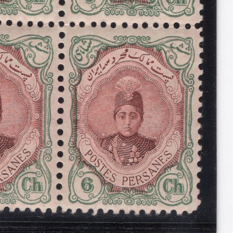 Block four 6ch green Tall perf 11.5x11 Ahmad Shah Scott # 481 mint very lightly hinged, Signed by Mr. Mehrdad Sadri.