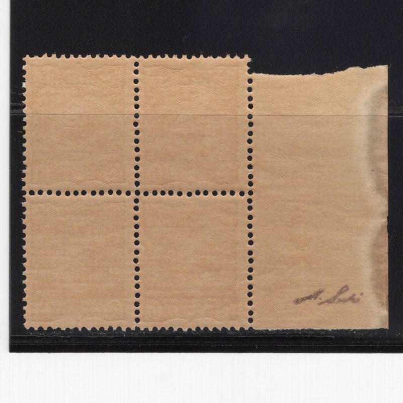 Marginal block four of 5ch yellow coat of arms Scott # 108 mint never hinged, Signed by Mr. Mehrdad Sadri.