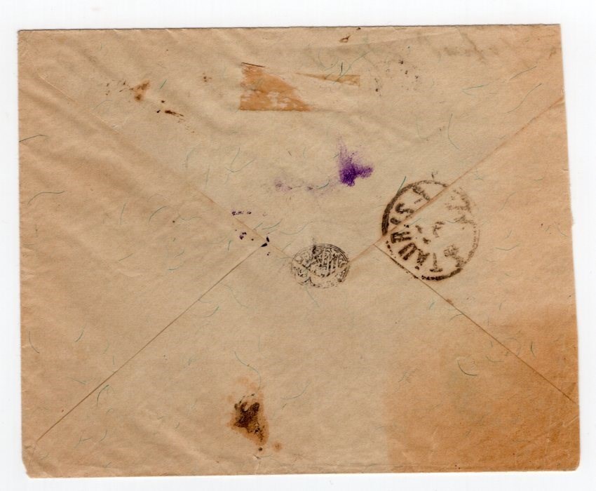 Pre paid cover from Tauris to Astara with Taxe Perque at Tauris, cover with folds and some stain.