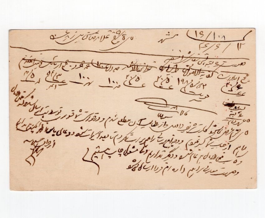 Two copies of 25 Dinar violet train on bridge postal card in two different color paper Persiphila # PC63A, B cream card on thin card and glazed white on thick card Persi value $65.00 with very small corner crease.