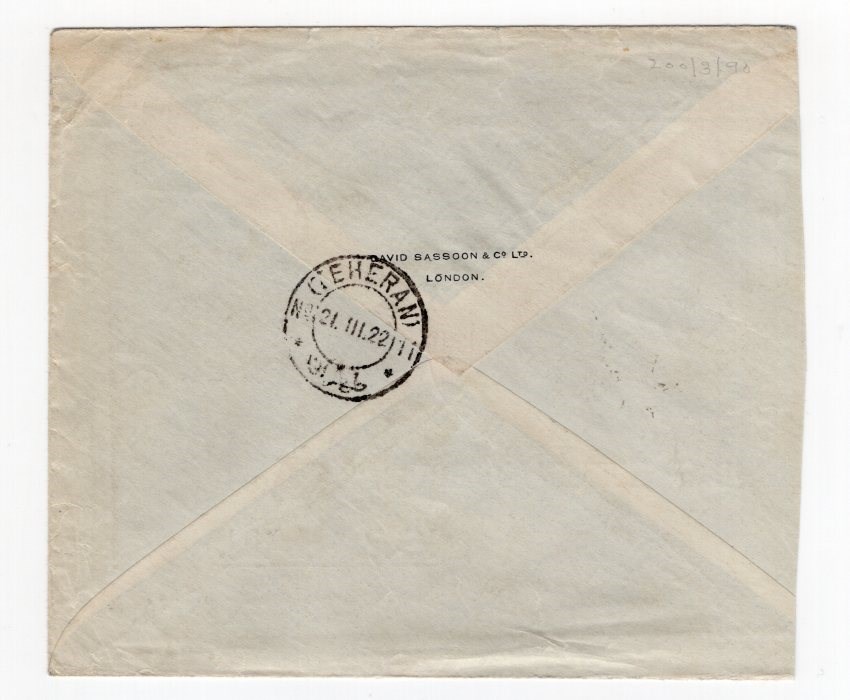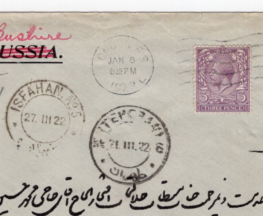 Scott # 164 on cover from London to Isfahan via Tehran.