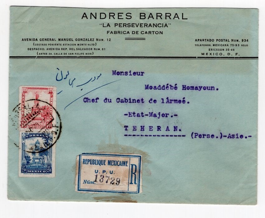 Scott # 639, 640 on cachet registered cover to Tehran via New York.