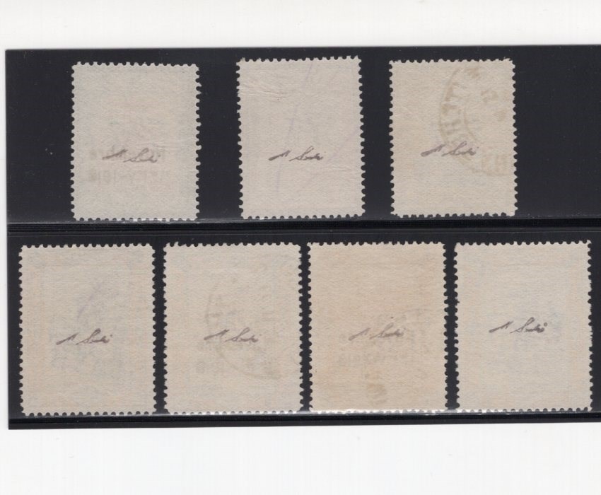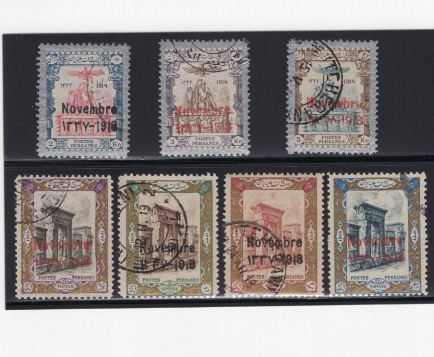Complete set 7 Ahmad Shah coronation overprinted for the end WWI Scott # 610-6 postally used Scott value $215.00, Signed by Mr. Mehrdad Sadri.